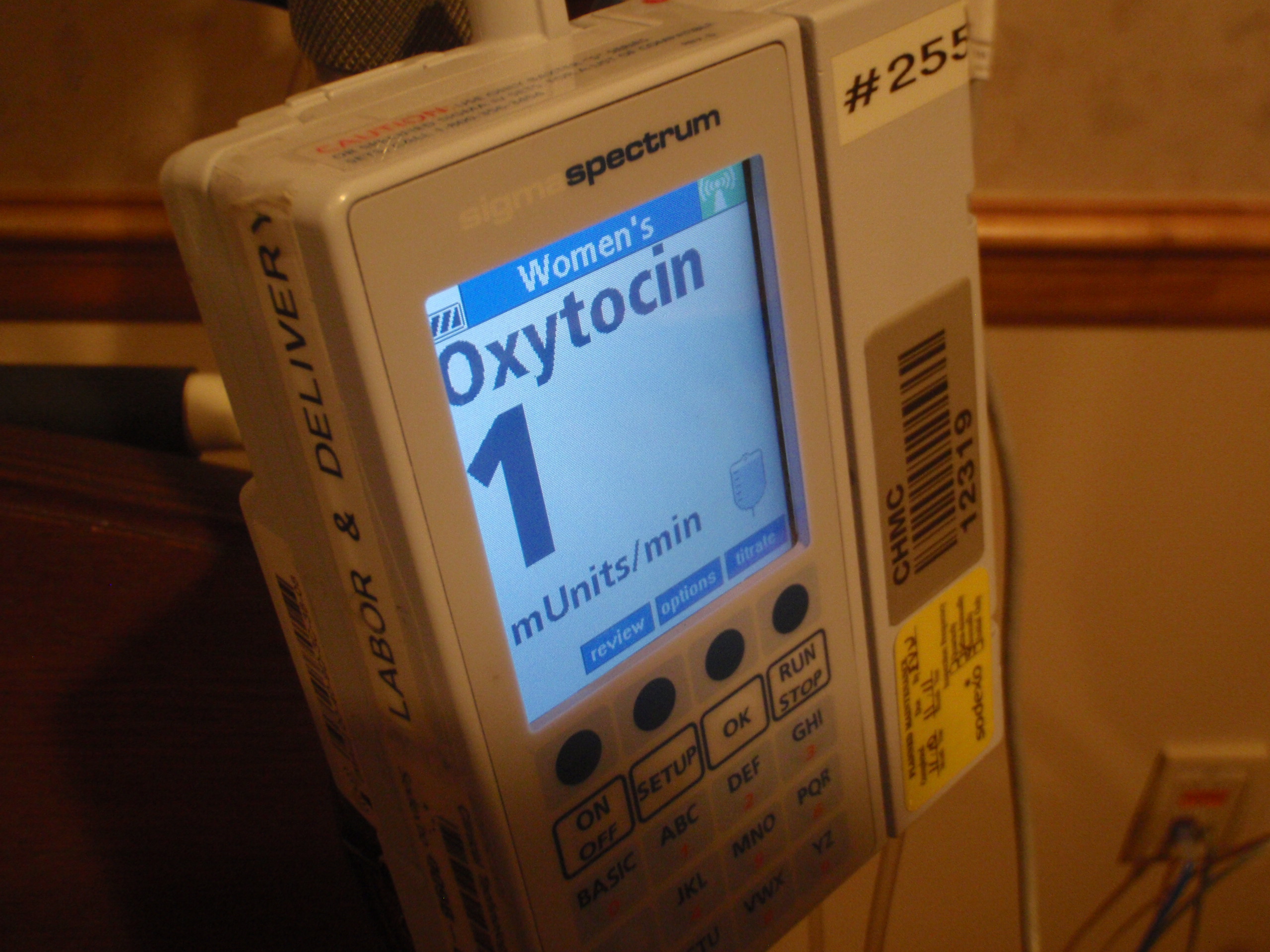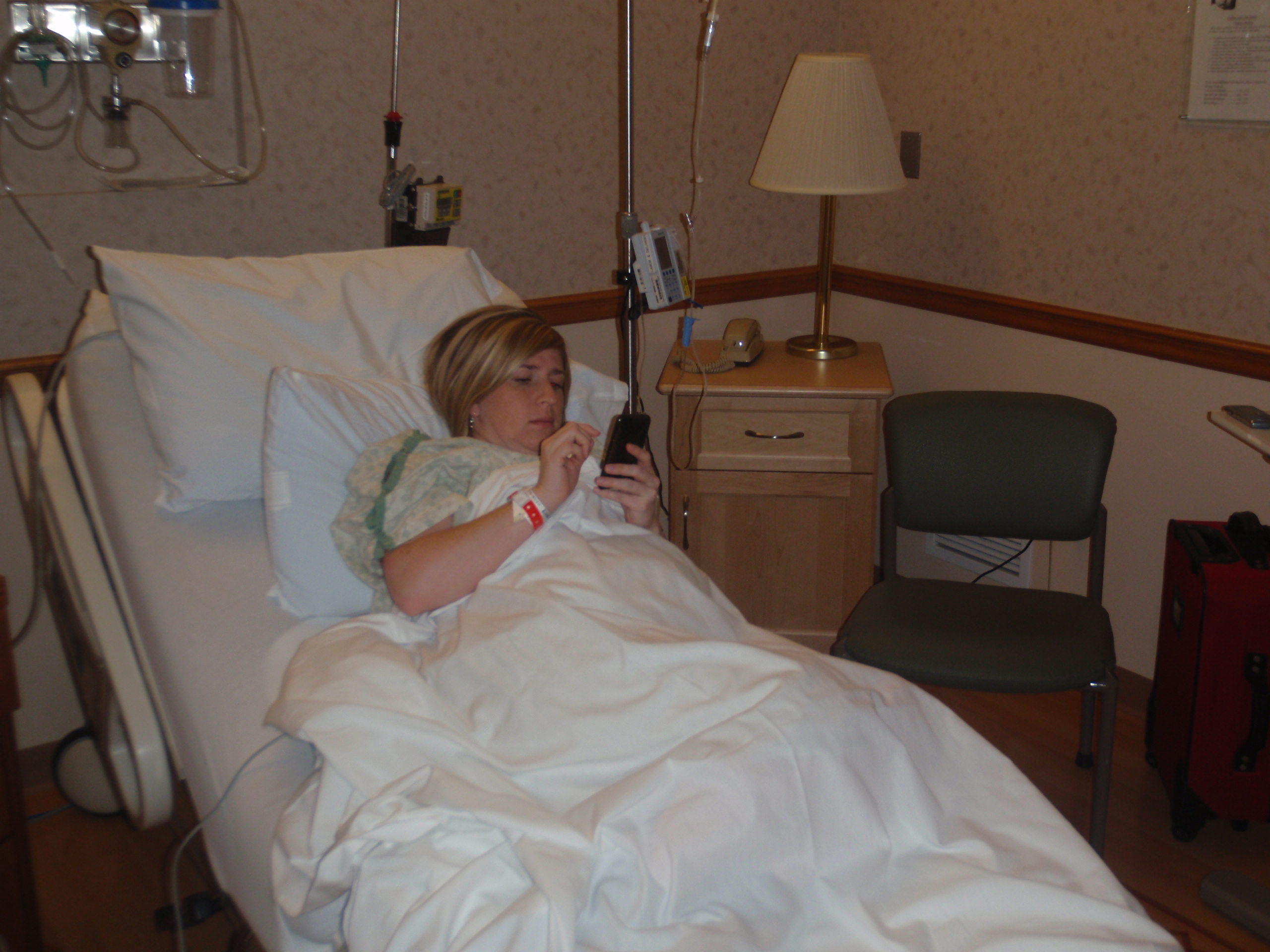 Epidural started and fully set. Jamie finally starting to feel good now. I learned from last time and sat down while they put the needle in. Time to relax now.