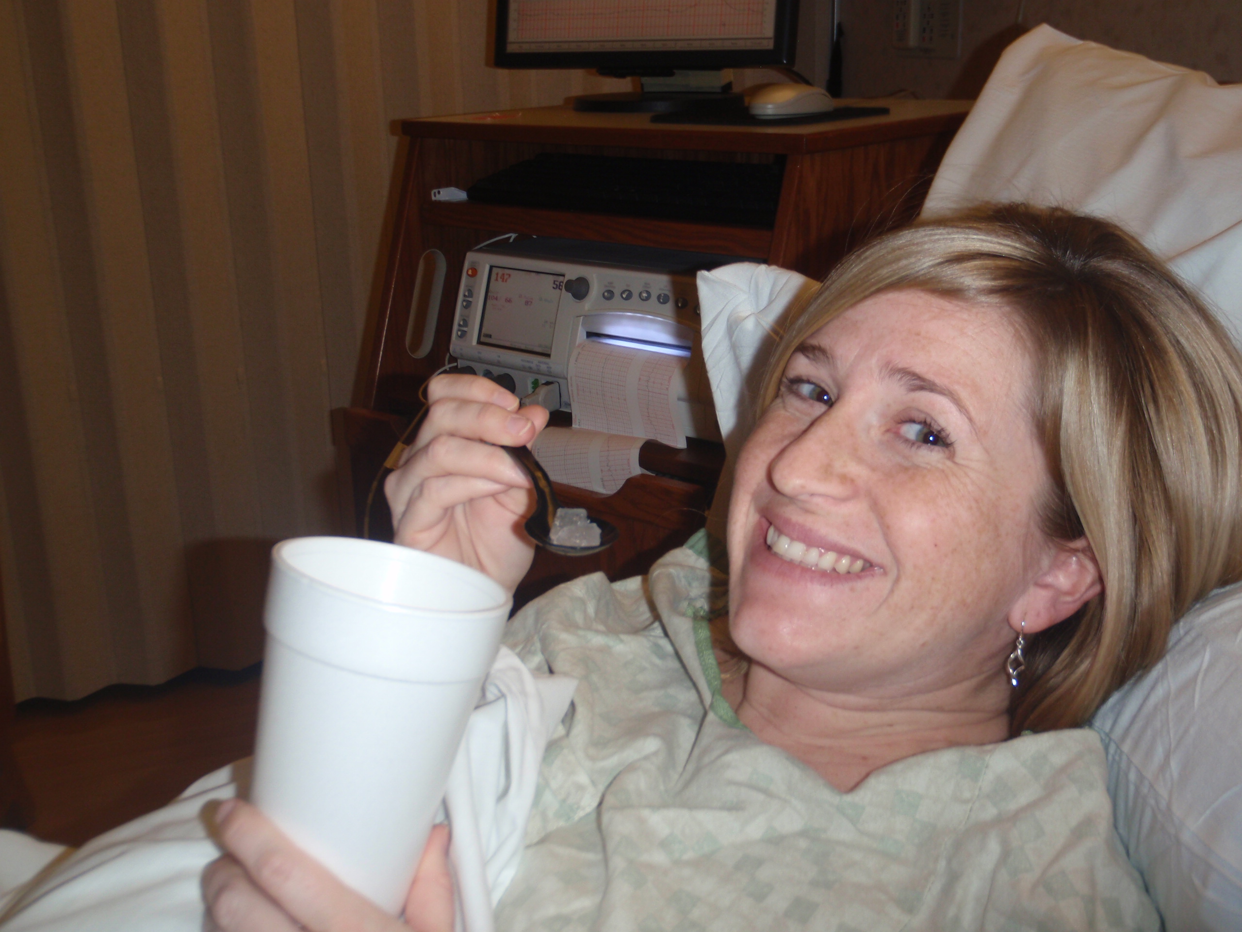 Pitocin started with a "liquid sweet tart" chaser. The nurses gave Jamie a medicine for heartburn.