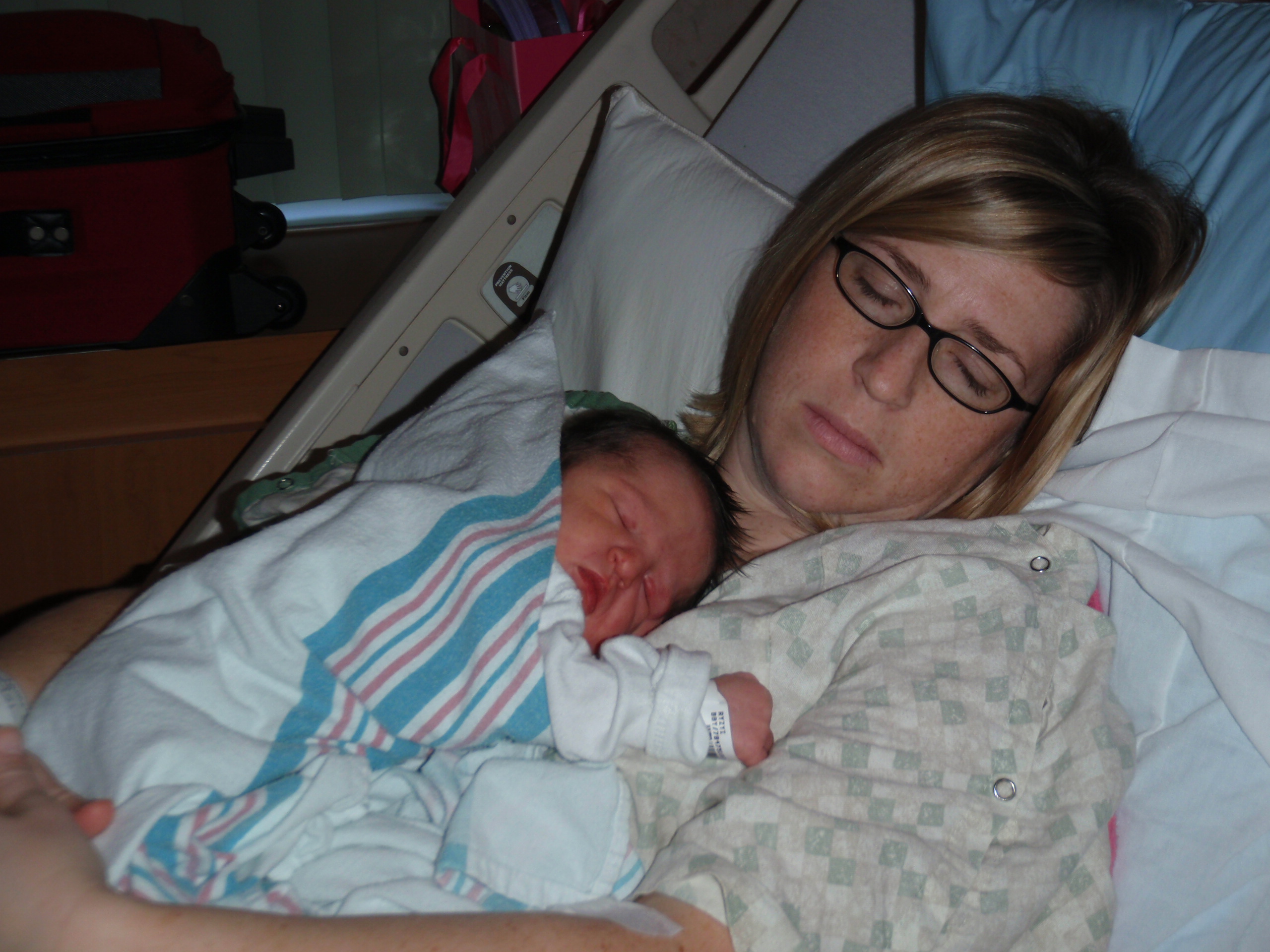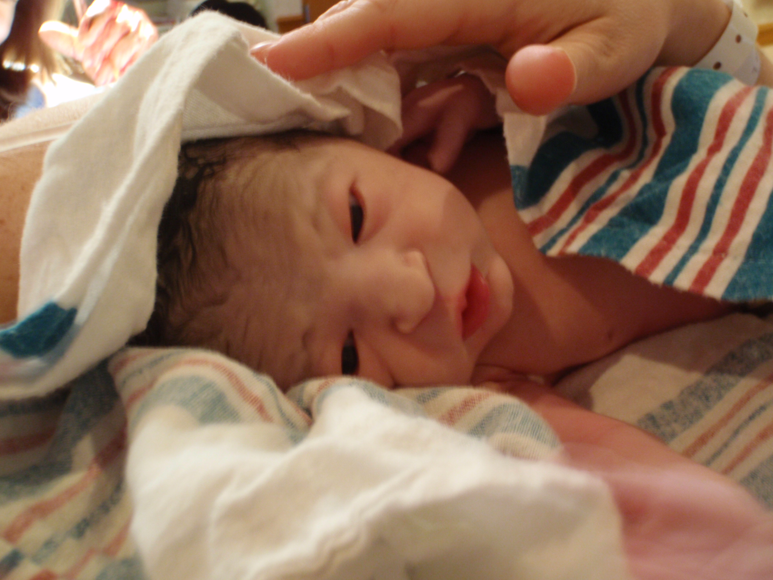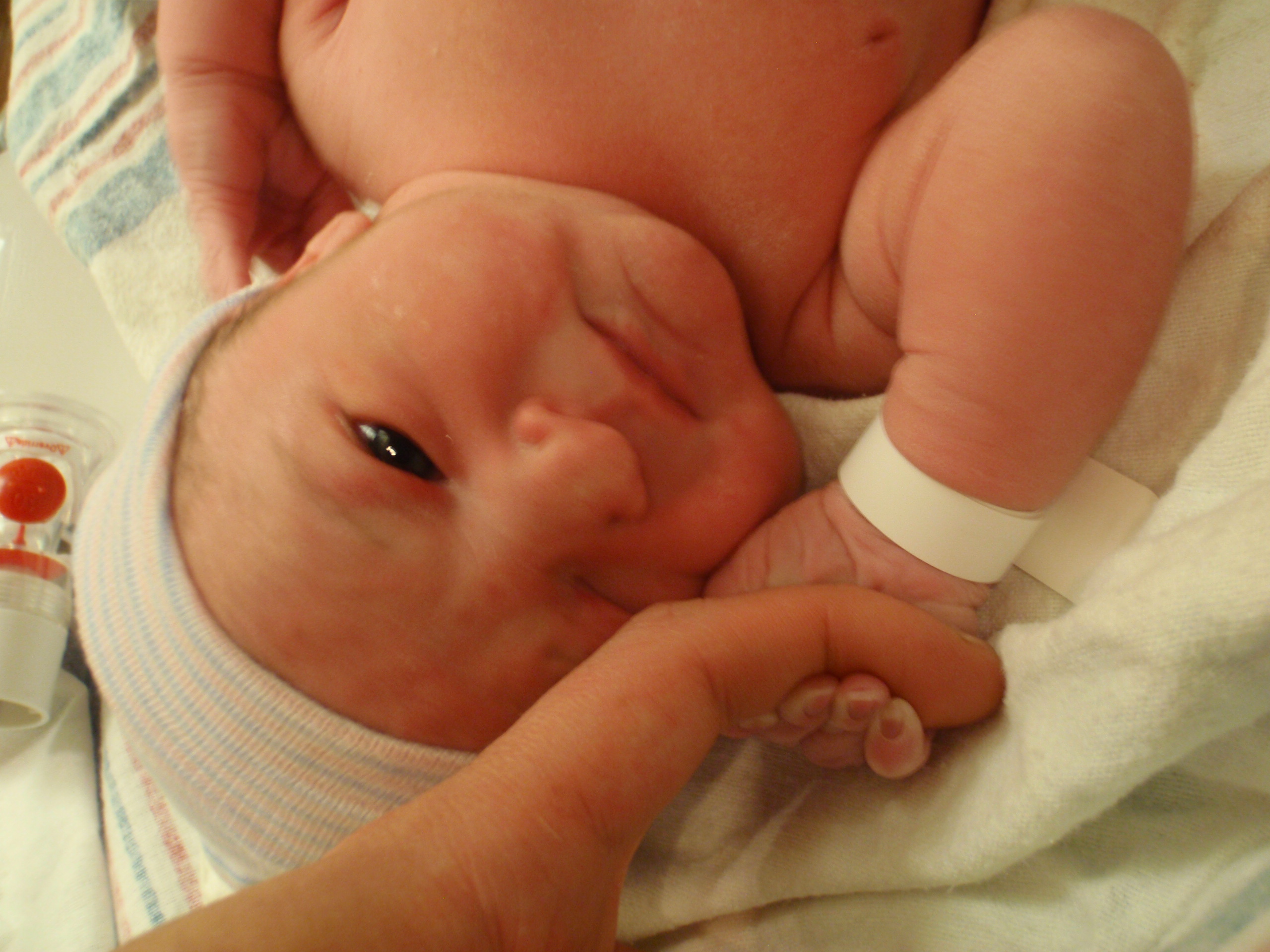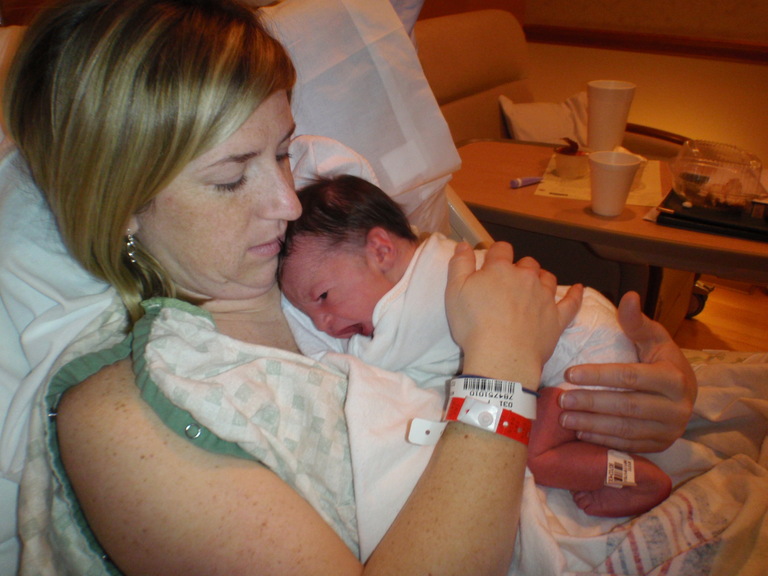 After multiple successful feedings, passed hearing test and all kinds of sweetness from Leah. Mom and Dad are signing off for the night for some well needed shut eye. More pictures are posted in order of occurrence to the left and also in