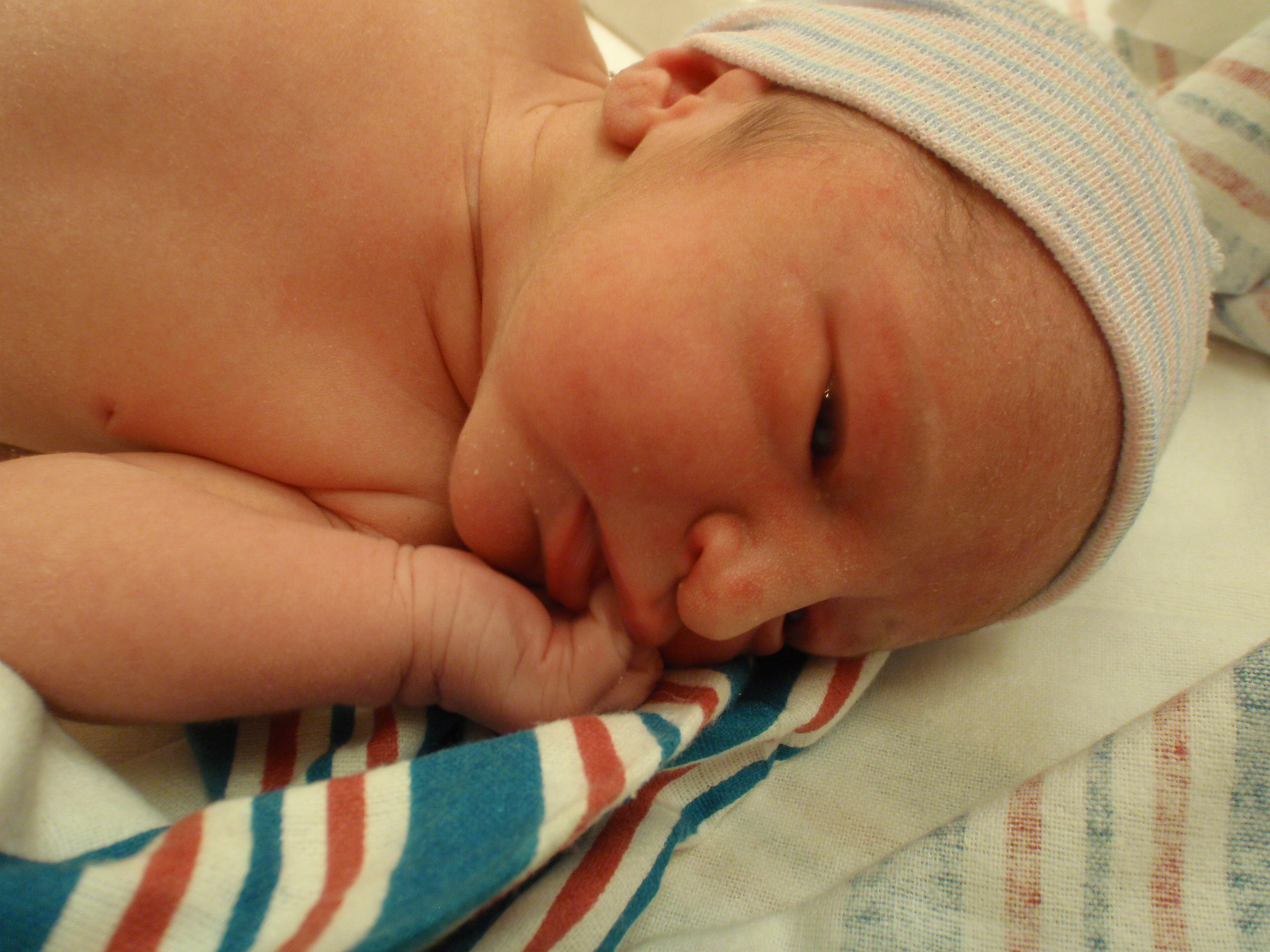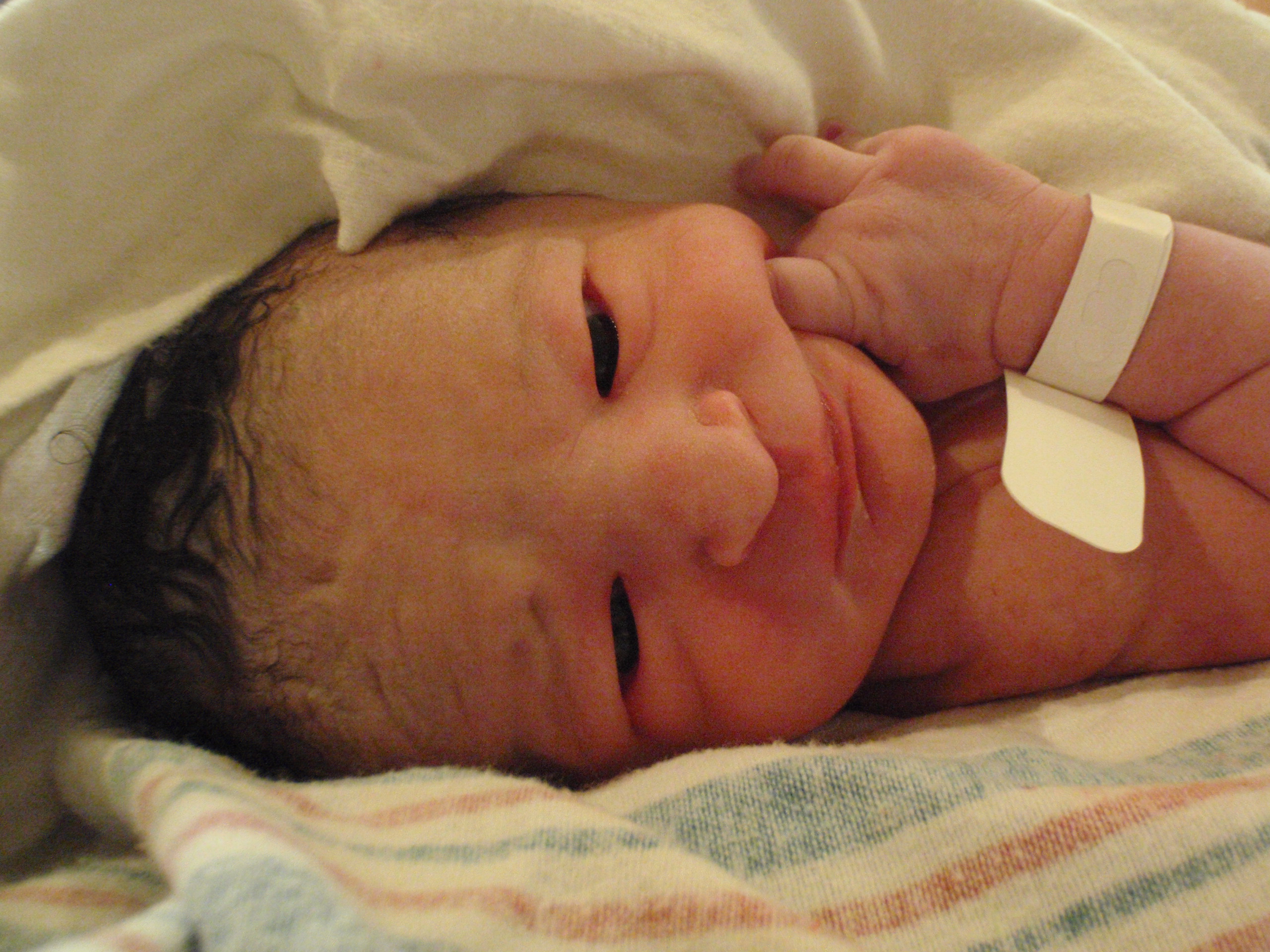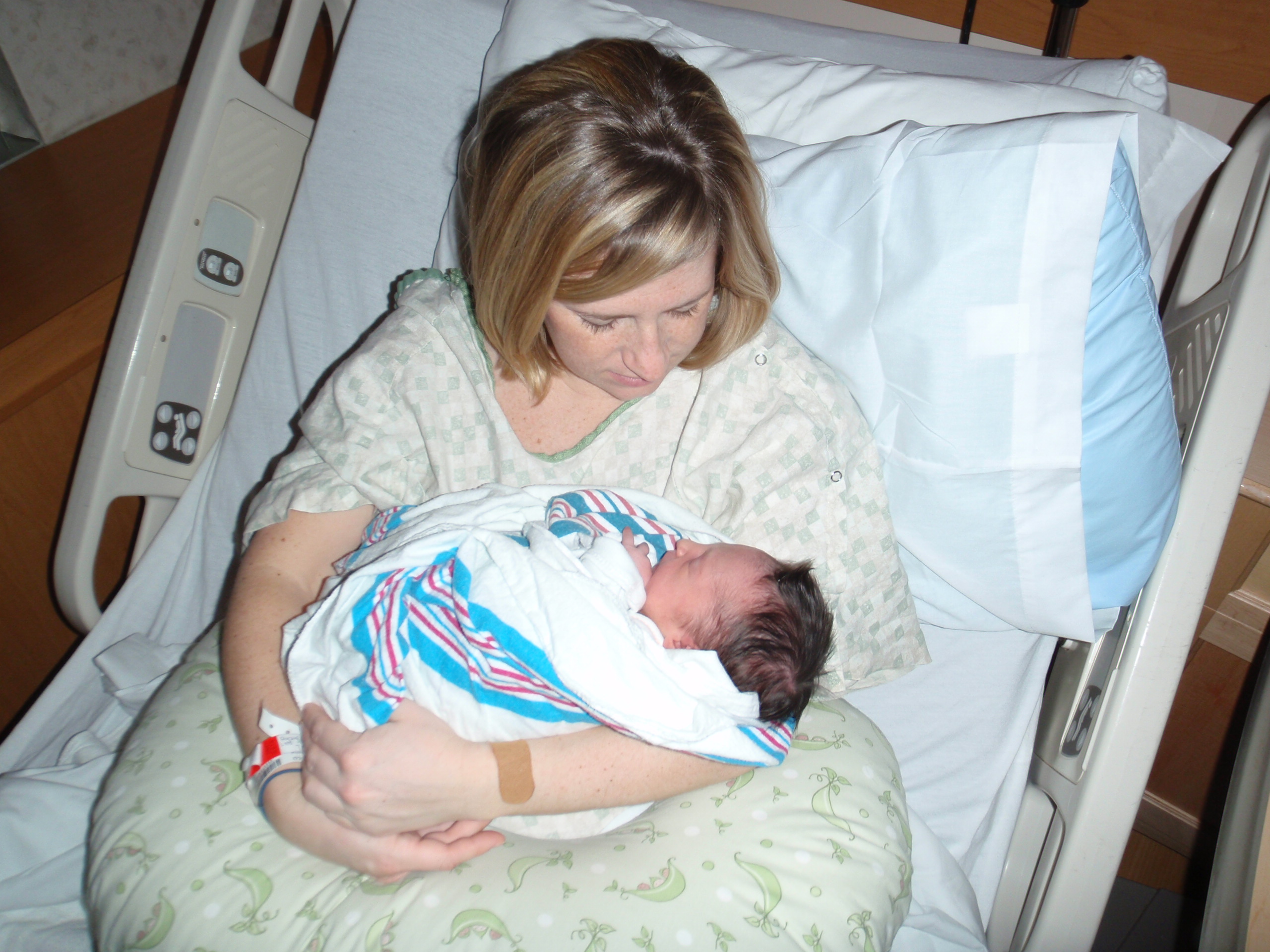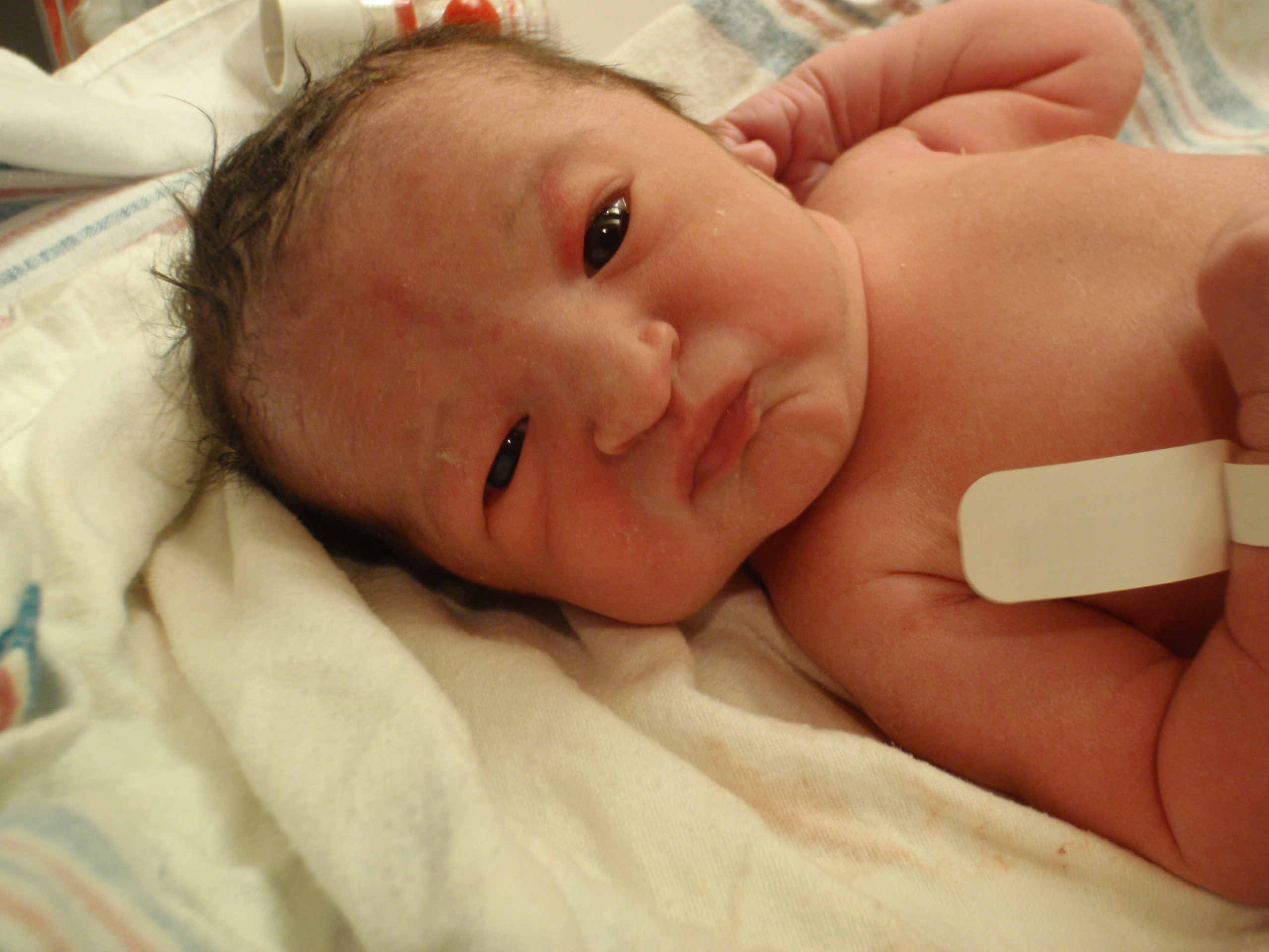 After multiple successful feedings, passed hearing test and all kinds of sweetness from Leah. Mom and Dad are signing off for the night for some well needed shut eye. More pictures are posted in order of occurrence to the left and also in