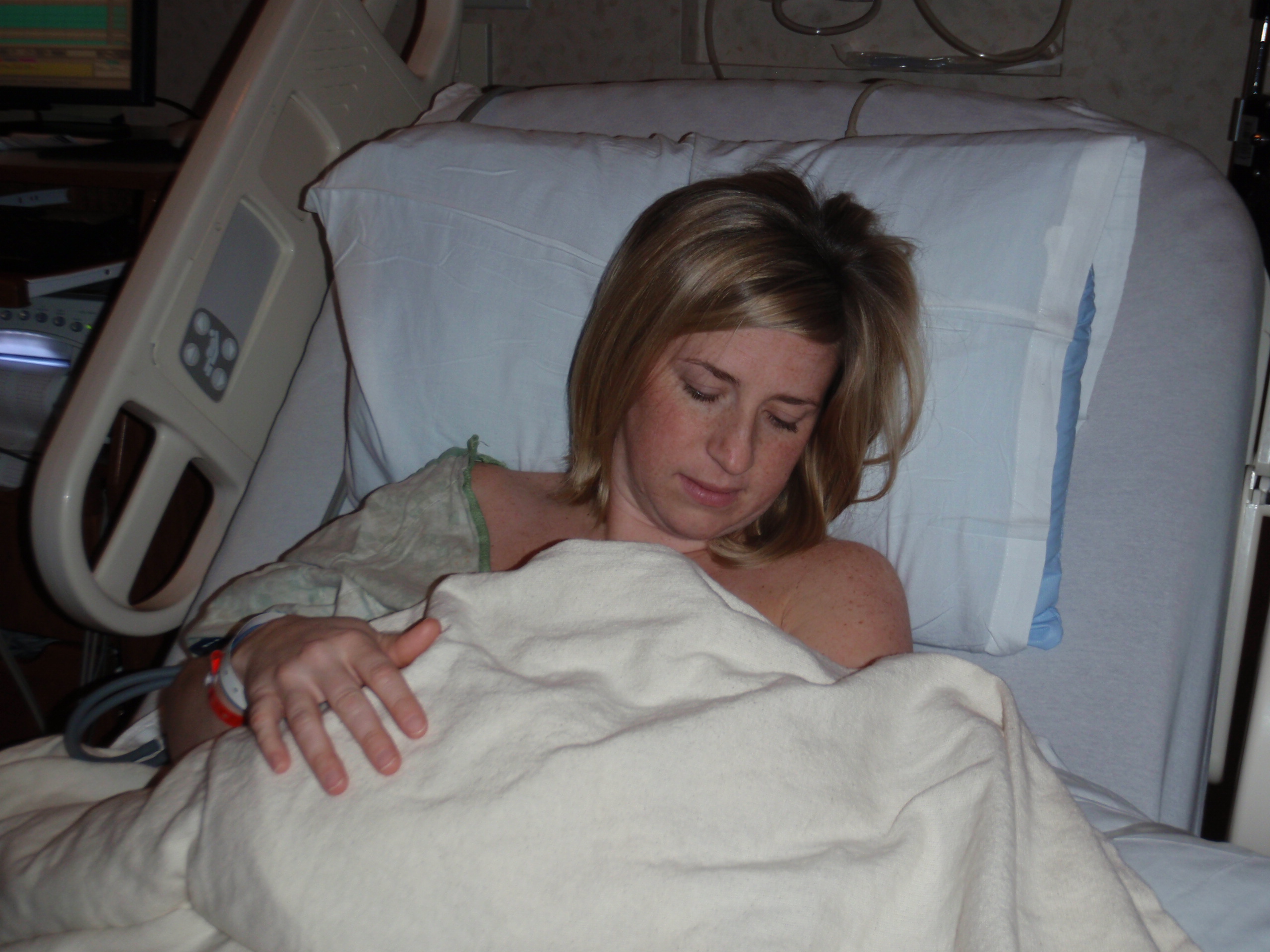 30 minutes into Epidural time... calm and relaxed. Dilated to a 3 or 4 and fully effaced. Jamie says "it's nap time"