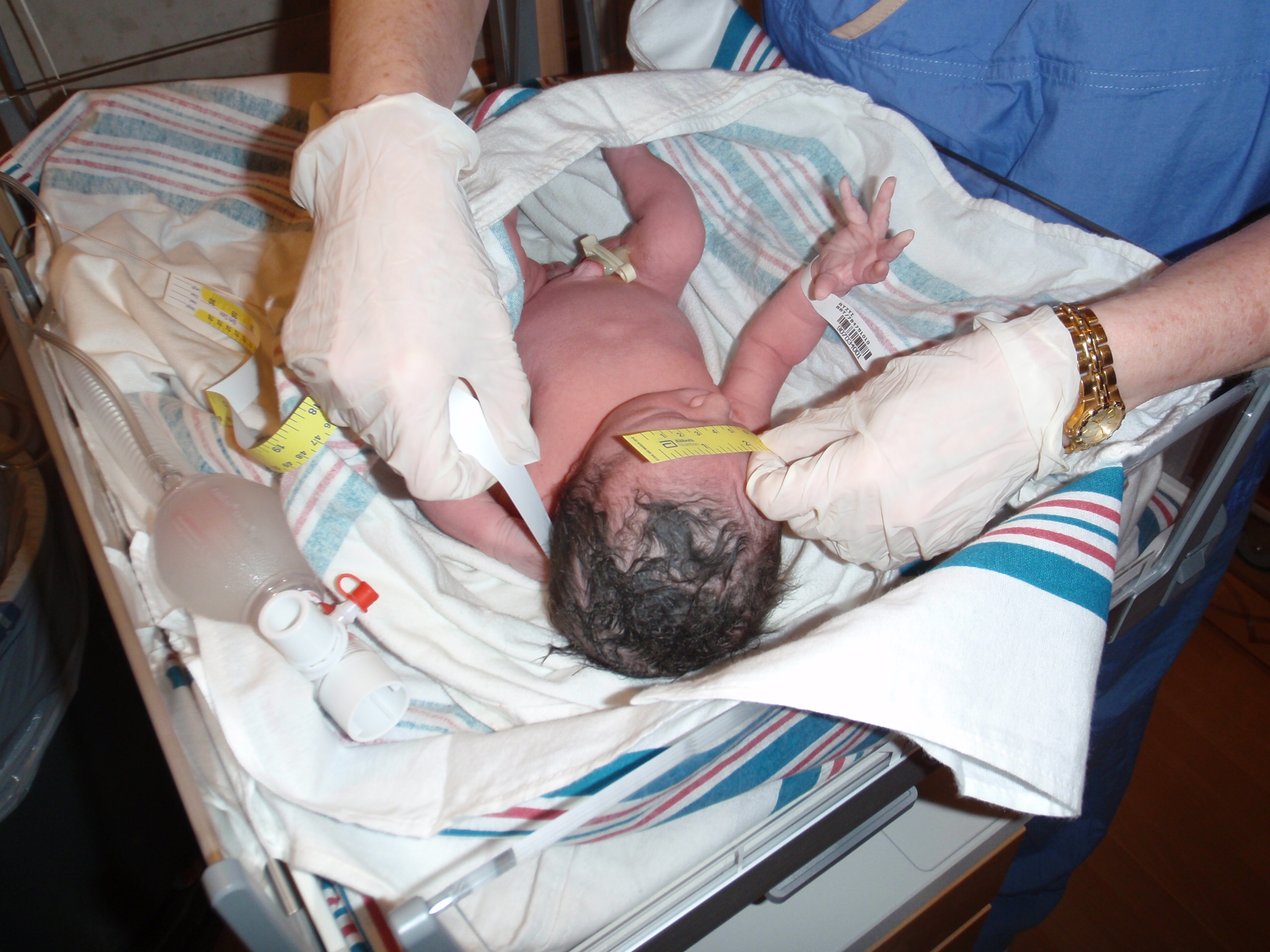 Official measurement and weight coming up soon. She latched on and is feeding like a champ already.