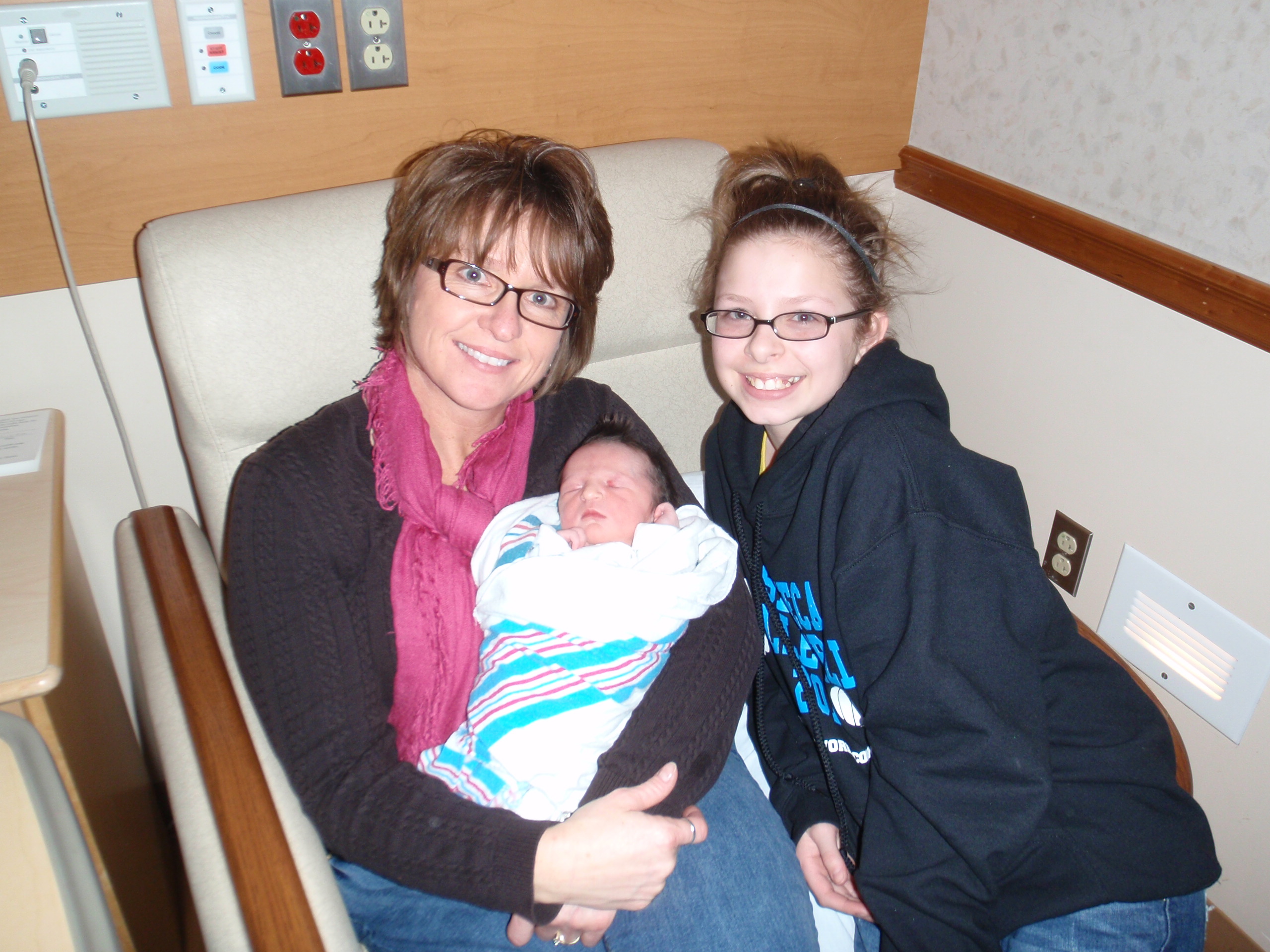 What a long day. Baby Leah is now over 36 hours old and doing great. It's pretty amazing how much more the nurses let us take care of her without interruption. There has been more checkups today for Jamie to make sure she is recovering ok than Leah's progression. We had some visitors today after Grandma and Ellie left. All of the cousins came by to see the newest member of the family. Pictures are updated, but remember the 10 most recent show on the left picture bar. Don't forget you can look at all the pictures by going to