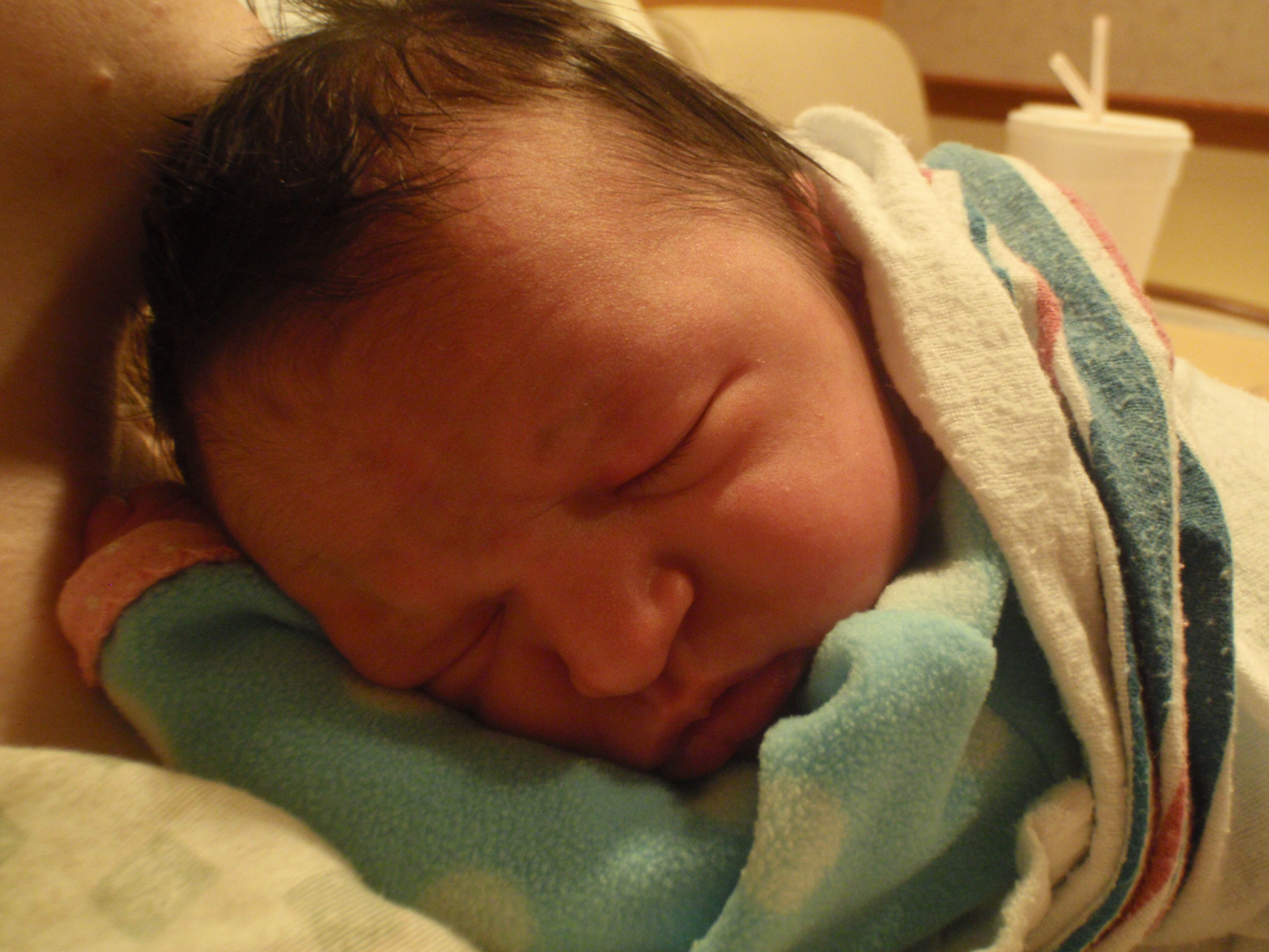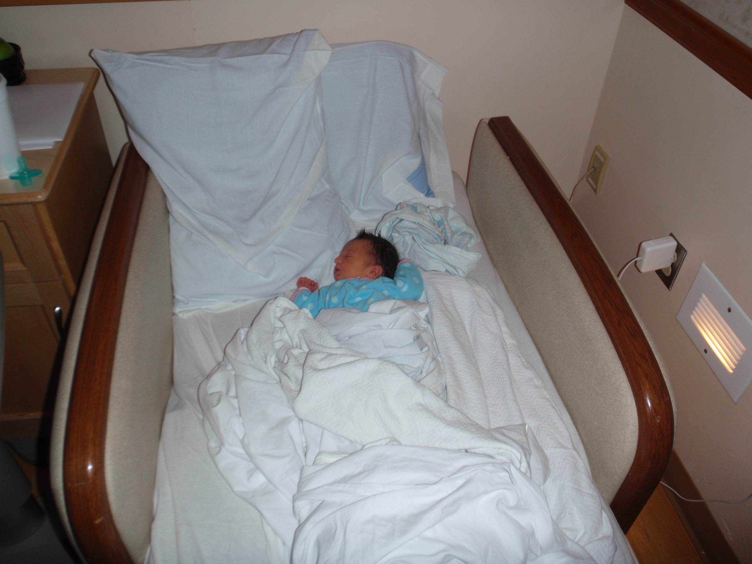 After multiple successful feedings, passed hearing test and all kinds of sweetness from Leah. Mom and Dad are signing off for the night for some well needed shut eye. More pictures are posted in order of occurrence to the left and also in