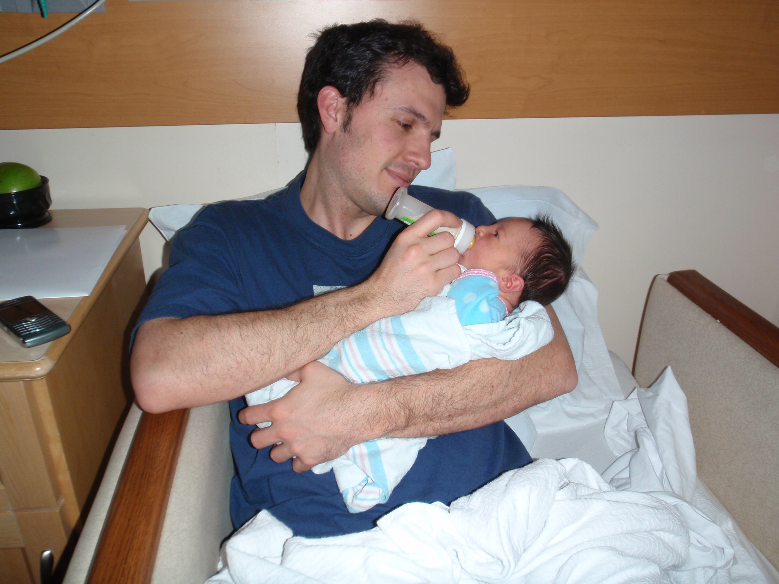 Last post of the night... Leah has been nursing and sucking on a pacifier for over two hours. We decided that she is hungry and not getting enough from Jamie. We had nurse Linda bring us some organic Similac formula. Daddy was able to help out and feed her almost the entire 2oz bottle. She is now sleeping soundly with a full little belly. Good night everyone!